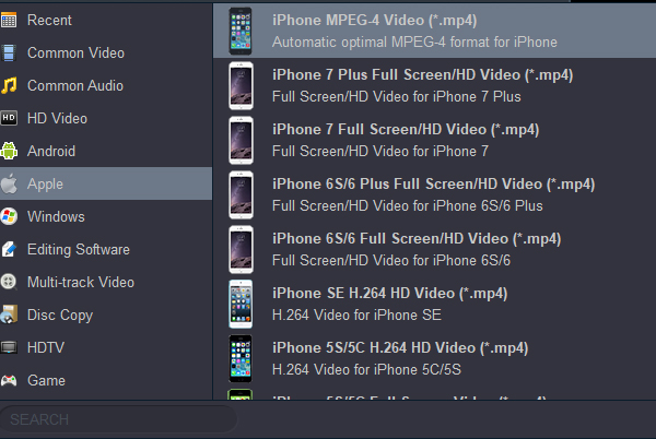 Step 4: Under the “Foramt” tab, set the output format to MP4. Under “Apple”, select H.265 (HEVC) for the best quality‑to‑size ratio – the iPhone 17 series’s A19 chip handles HEVC effortlessly.